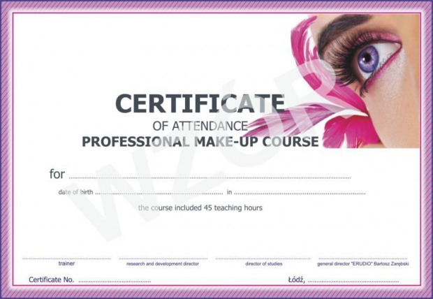 Na podstawie egzaminu wydawane jest Zaświadczenie ukończenia Kursu Makijażu profesjonalnego (dokumenty wydawane są na mocy Rozporządzenia Ministra Edukacji i Nauki z dnia 3 lutego 2006 r. w sprawie uzyskiwania i uzupełniania przez osoby dorosłe wiedzy ogólnej, umiejętności i kwalifikacji zawodowych w formach pozaszkolnych), uprawniające do samodzielnego wykonywania zabiegów z zakresu zagadnień objętych kursem.