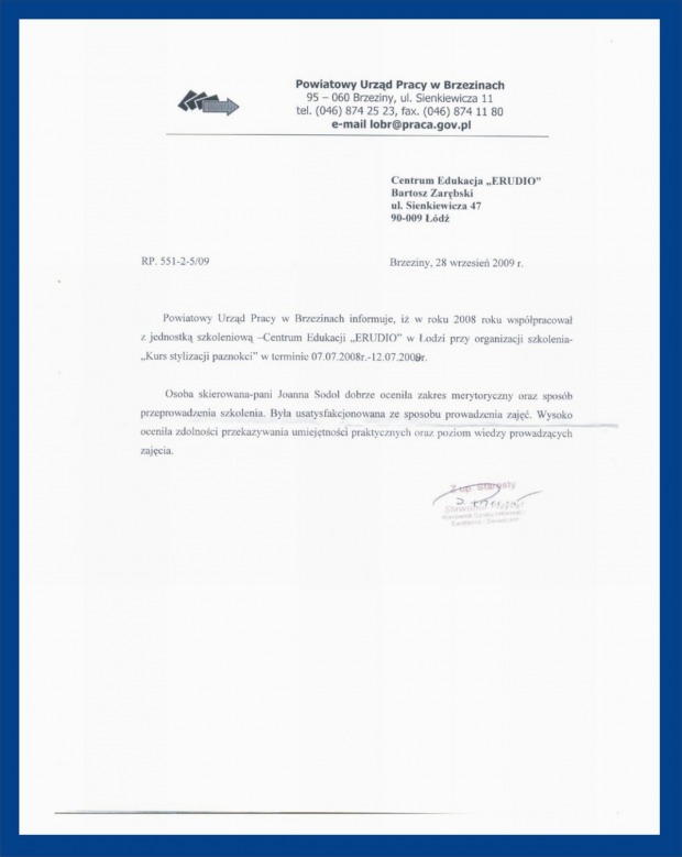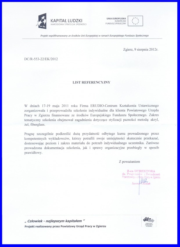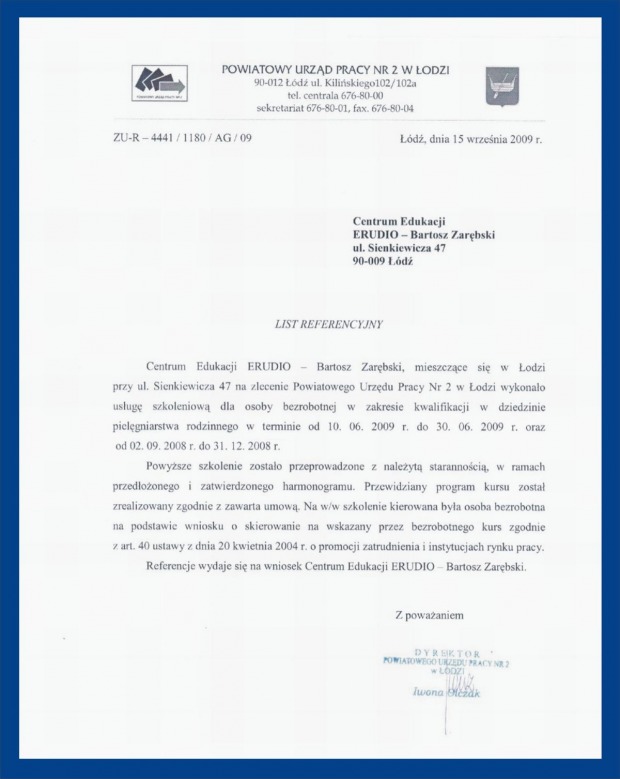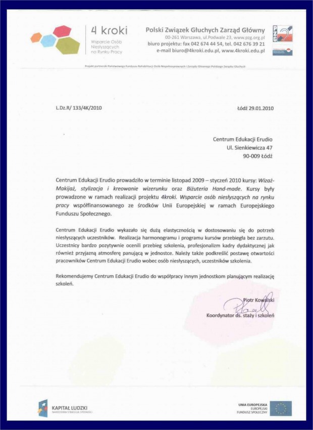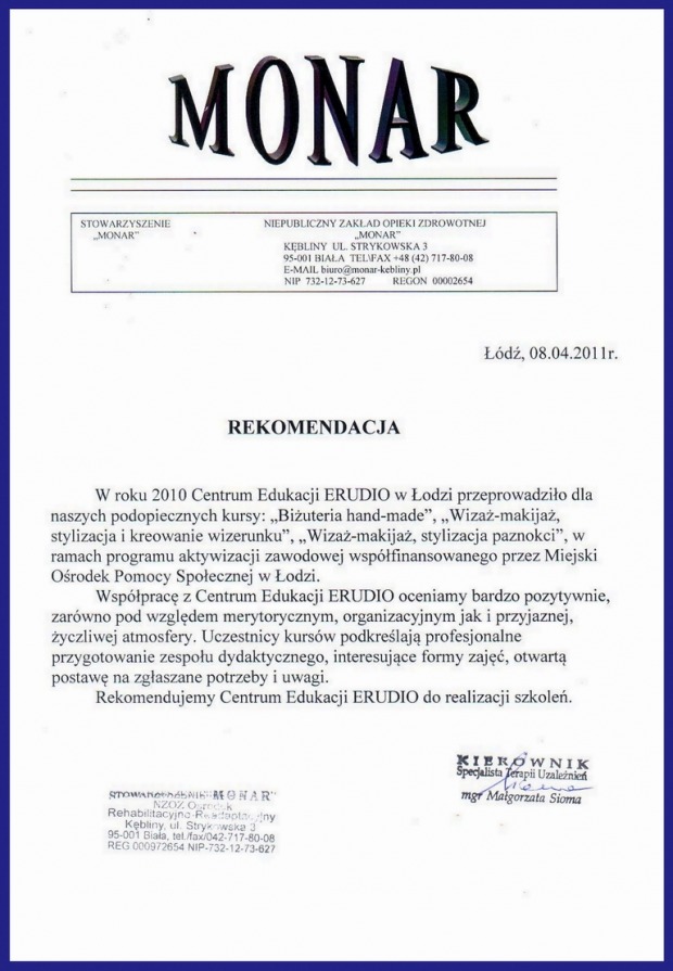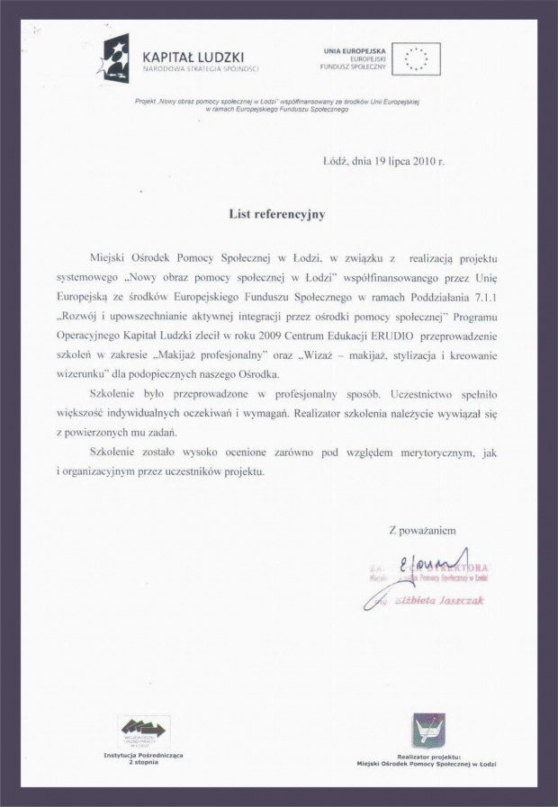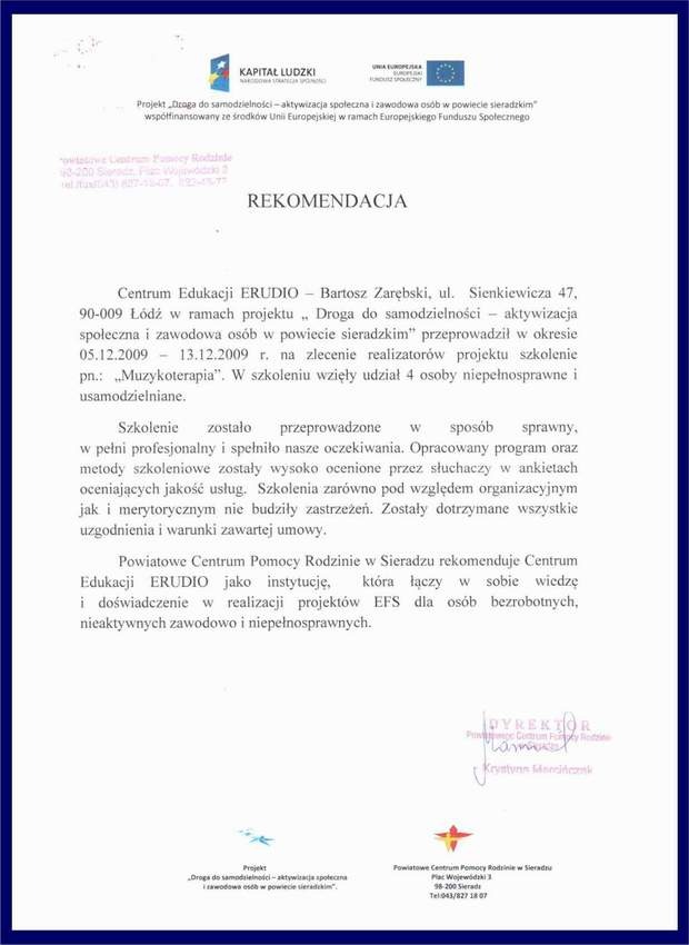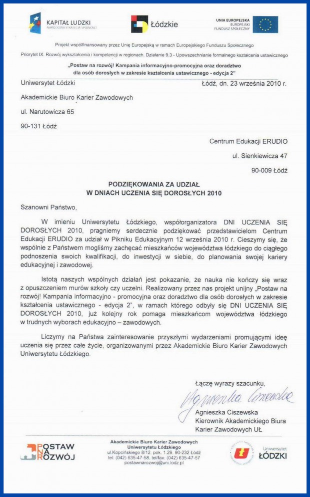 Referencje dla Centrum Edukacji ERUDIO w Łodzi